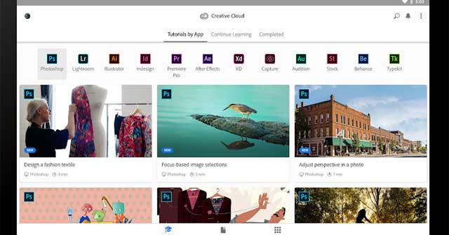 Sở hữu những ứng dụng Creative Cloud tốt nhất cùng video và hướng dẫn hấp dẫn. Lọc ứng dụng bạn yêu thích, đồng thời, theo dõi tiến trình làm việc qua hàng loạt hướng dẫn chi tiết trong Adobe Creative Cloud cho Android .
