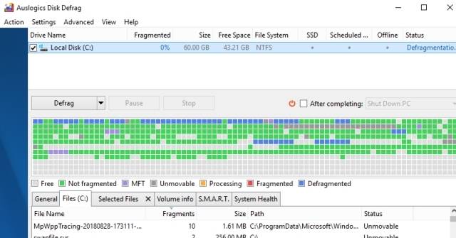 Điểm nổi bật của phần mềm chống phân mảnh ổ cứng Auslogics Disk Defrag