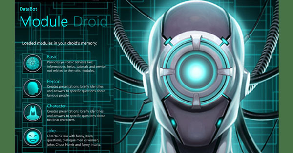 DataBot là ứng dụng trợ lý ảo miễn phí cho thiết bị Windows và Windows Mobile. Có chức năng tương tự Cortana hay Siri, DataBot là robot trò chuyện ảo cực kỳ đắc lực cho người dùng khi sử dụng thiết bị điện tử.