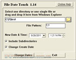 File Date Touch sẽ thay đổi ngày chỉnh sửa và ngày truy cập sang ngày và tháng mới cho các file người dùng chọn, khi nút ” Change Dates ” được nhấn. Mục ngày tạo sẽ thay đổi dựa vào những lựa chọn người dùng đã sử dụng.