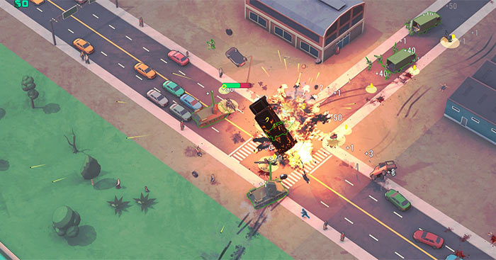 Nếu bạn thấy chưa đủ hỗn loạn? Hãy sử dụng máy ủi, xe buýt, xe cảnh sát, xe tăng… để san bằng tất cả. 6 nhân vật với hệ thống skill, trang bị và nâng cấp phương tiện đã sẵn sàng để cháy hết mình trên đấu trường hủy diệt này.