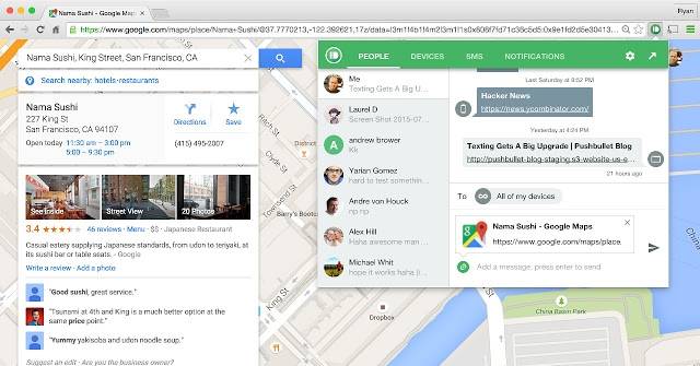Với Pushbullet, bạn có thể chia sẻ đường dẫn giữa điện thoại với máy tính nhanh chóng thay vì phải copy sang mail hay các ứng dụng ghi chú để sử dụng sau này. Ở bất kì trang web nào, chỉ cần chọn thiết bị di động để gửi và thêm 1 vài dòng tin nhắn, nhấp Enter là đường link đã được gửi tới điện thoại. Tính năng này tỏ ra vô cùng hữu ích khi bạn cần phải truy cập vào 1 đường link sau này trên điện thoại mà không biết làm cách nào chuyển sang điện thoại nhanh nhất.