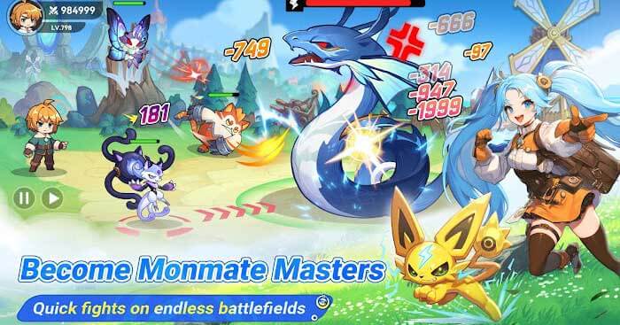 Khám phá các Monmate trong hình dạng Pet hoặc Furry. Huấn luyện những đồng minh huyền bí này, kết hợp các đặc điểm nguyên tố và thống trị các trận chiến với tư cách là bậc thầy luyện thú tối thượng.