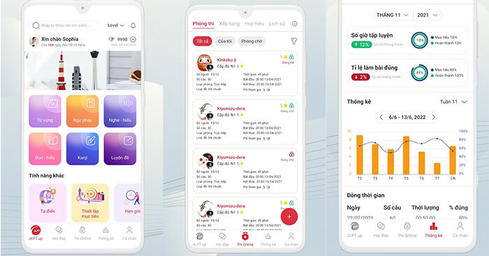 Không chỉ vậy, ứng dụng mang đến cho người dùng hơn 500 bộ đề thi JLPT từ N5 – N1, chất lượng mà mình còn nhận được điểm và giấy chứng nhận mô phỏng sau khi hoàn thành bài thi. Tại đây, các bạn cũng có thể thử thách thi thử online cùng hàng nghìn người, thời gian và cấu trúc đề như thi thật.