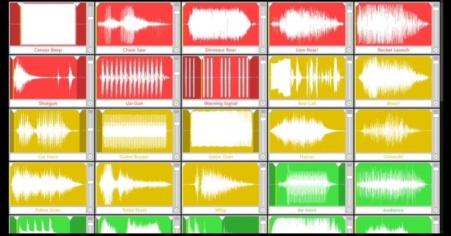 Sound Effects có 5 soundboard. Người dùng có thể cấu hình nhóm âm tương ứng với một ô cố định. Mỗi ô âm trong soundboard đều có nút “Play” và điều khiển âm lượng. Trình xem nâng cao cho phép bạn chỉ định điểm bắt đầu và kết thúc trong file âm thanh và mang tới các cài đặt bổ sung như gán mác màu khác nhau.