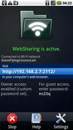 Các điện thoại truyền thống thường chia sẻ file hay nội dung số với máy tính thông qua USB, Bluetooth hay thẻ nhớ. Với Web Sharing, bạn còn có thể chuyển dữ liệu qua lại giữa máy tính bằng Wifi.