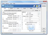 NetSetMan 3.2.1 cho phép bạn dễ dàng chuyển đổi qua lại giữa 6 cấu hình mạng khác nhau, mỗi cấu hình bao gồm các thông tin về địa chỉ IP, Subnet Mask, Gateway, DNS, tên máy tính, DNS Domain, WINS Server, máy in mặc định, script chạy mặc định. Đối với bản Pro, bạn còn có thể cấu hình thêm về Network-Domain, Proxy và trang chủ của trình duyệt. Chương trình sẽ giúp bạn tiết kiệm thời gian bằng việc lưu trữ các cấu hình này, mỗi khi bạn cần chuyển đổi, thay vì làm bằng tay điều chỉnh từng thông số đối với từng card mạng trong Windows, bạn có thể chỉ bằng 2 click là để thực hiện công việc đó.