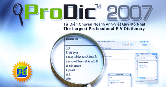 Prodict 2007 là một trong hai bộ từ điển nổi tiếng được VCcorp phân phối miễn phí, với khoảng 600.000 từ thuộc gần 20 chuyên ngành phổ biến.