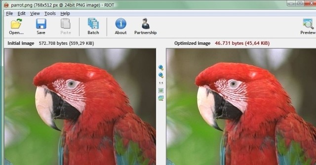 Radical Image Optimize Tool (RIOT) là công cụ chỉnh sửa ảnh miễn phí, cho phép tối ưu để giảm dung lượng nhưng không làm giảm chất lượng ảnh nhiều.
