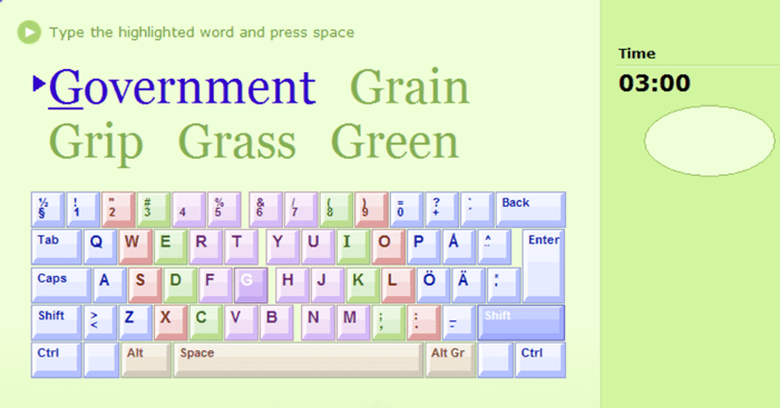 Bàn phím trên màn hình có mã màu giúp người dùng dễ nhớ vị trí các phím. Typing Master 11 hỗ trợ bàn phím QWERTY, QWERTZ, AZERTY, India…